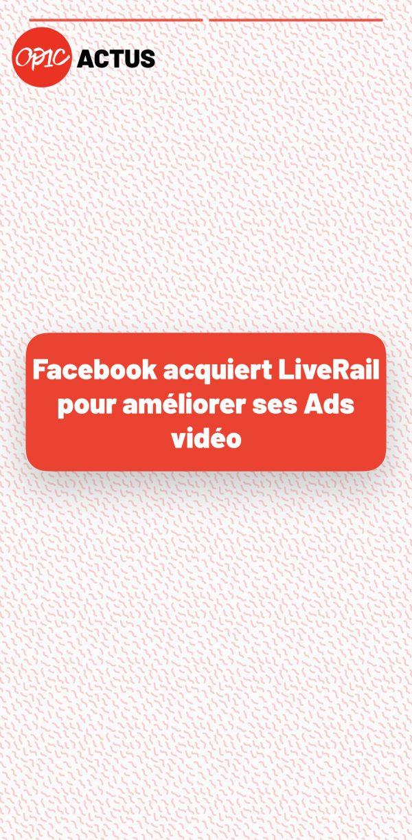 Facebook annonce l’acquisition de la firme LiveRail dans le but d’améliorer ses campagnes de publicités…